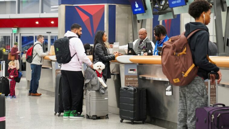 People check-in for their flights at the airport ahead of the Thanksgiving Holiday at Hartsfield-Jackson Atlanta International Airport, in Atlanta, Georgia, U.S., November 27, 2024.