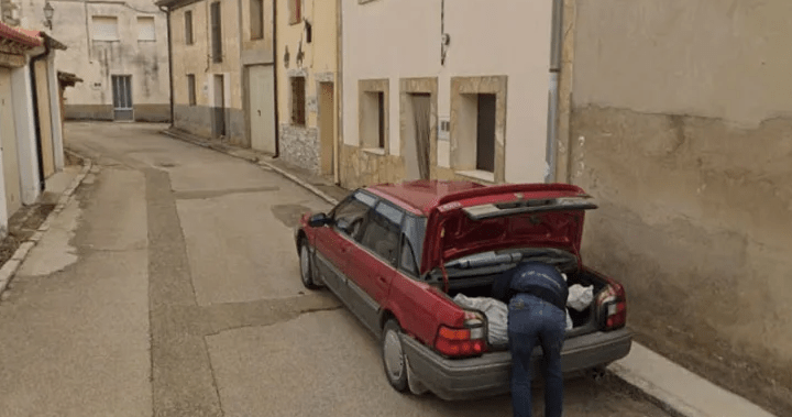 The images in question were captured by a Google Maps car camera in October, in which a man can be seen hunched over the trunk of a car on a nearly deserted street in Spain, loading a large, bulky object wrapped in what appears to be a white sheet or bags.