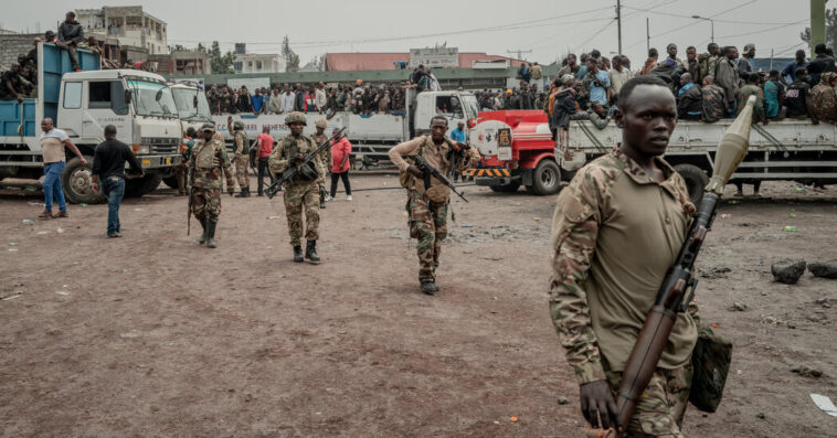 On Thursday, in a yard outside Goma’s biggest stadium, rebels with the Rwanda-backed M23 militia loaded more than 1,000 soldiers they had captured into truck beds, where the men stood packed together. Most wore the uniforms they were captured in. Many of them were furious.