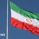 A U.S. flag flutters amid the remains of burnt buildings as powerful winds fueling devastating wildfires in the Los Angeles area force people to evacuate, in the Pacific Palisades neighborhood of west Los Angeles, California, U.S. Jan. 8, 2025.