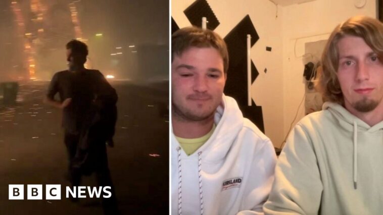 Tanner Charles and his friend were at home trying to make his house as fire-proof as possible when the Palisades blaze started closing in. They filmed the moment they were forced to leave, running down a street with multiple burning homes.