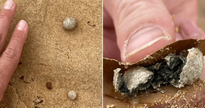 The grey and white balls, most about the size of a marble, come months after mysterious black balls washed up, prompting the closure of eight beaches in October. When authorities tested those balls, they determined they were likely the result of a sewage spill.