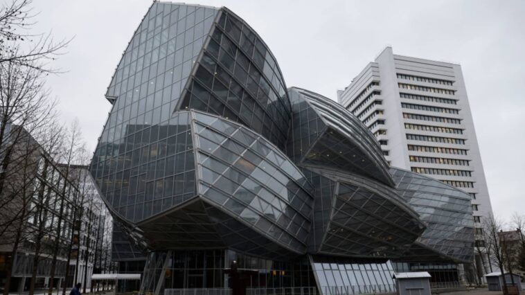 An office building designed by Frank O. Gehry at the Novartis AG headquarters campus in Basel, Switzerland.