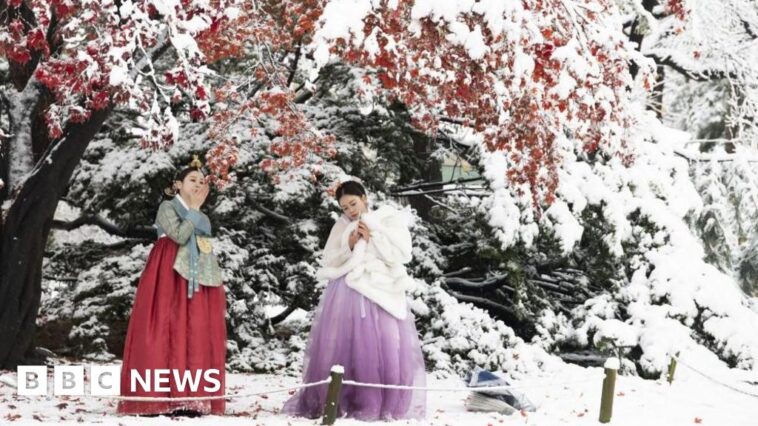 The South Korean capital was covered with at least 16 cm of snow on Wednesday – beating the city’s previous record of 12.4cm from November 1972.