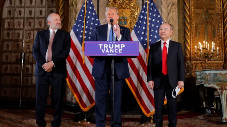 The billionaire investor and founder of the Japanese tech-investing firm promised in the joint announcement with Trump to create 100,000 jobs at a minimum focused on artificial intelligence and related infrastructure. The money will be deployed before the end of Trump’s term.