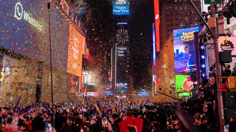 A view of the ball drop during Times Square New Year’s Eve 2025 Celebration on December 31, 2024 in New York City.