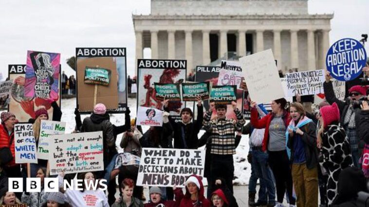 Getty Images Protesters walk along the National Mall near the Washington MonumentGetty Images