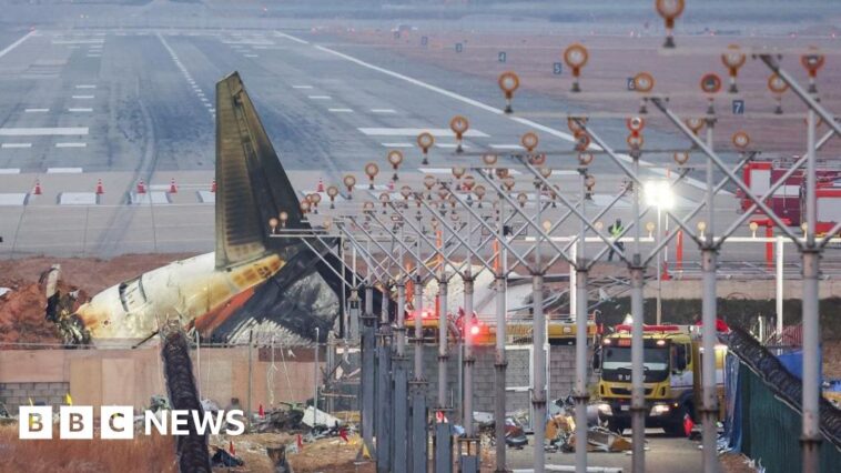 Authorities investigating the cause of South Korea’s worst-ever plane crash are considering the significance of the concrete wall’s location about 250m (820ft) off the end of the runway.